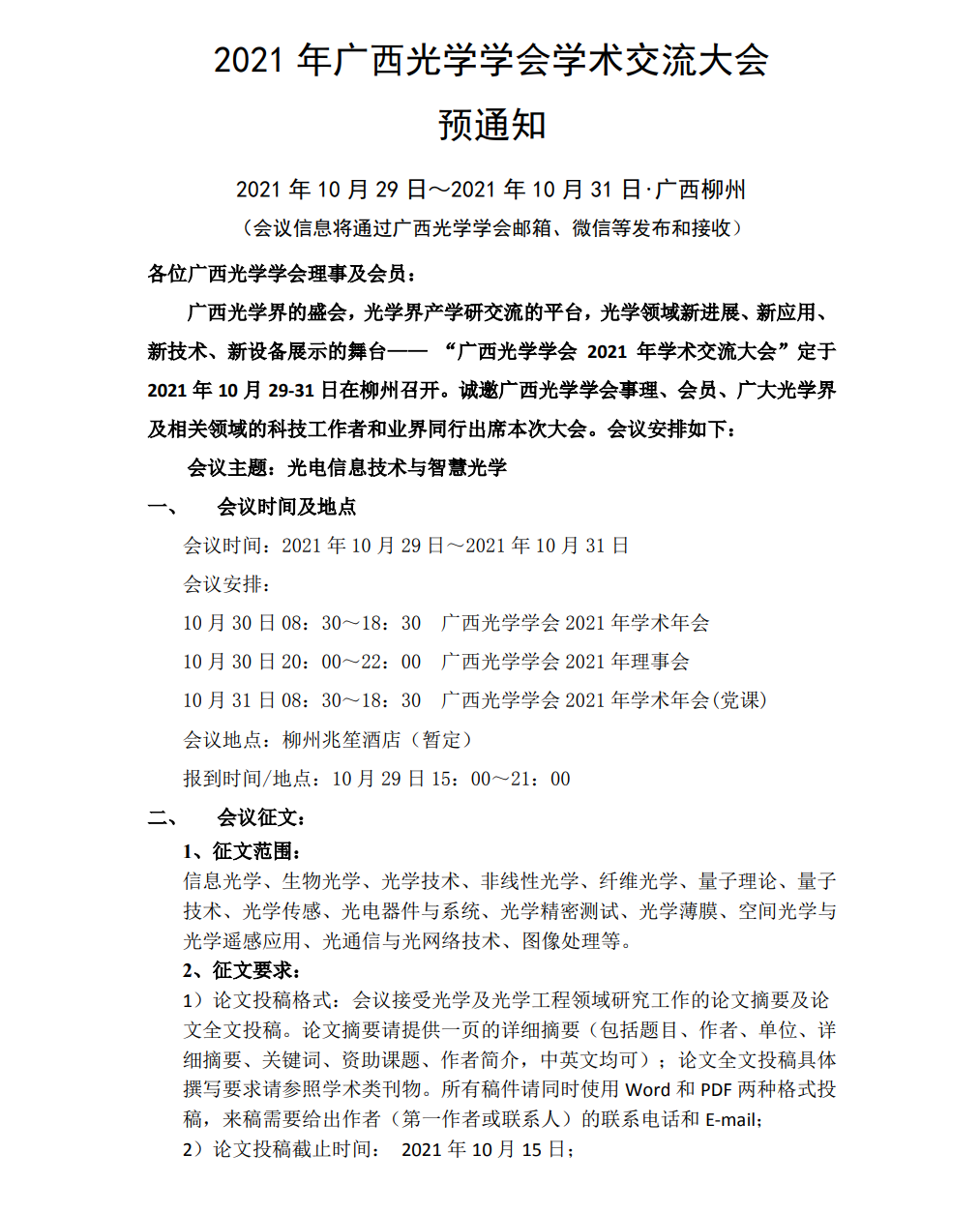 2021 年廣西光學(xué)學(xué)會學(xué)術(shù)交流大會預(yù)通知